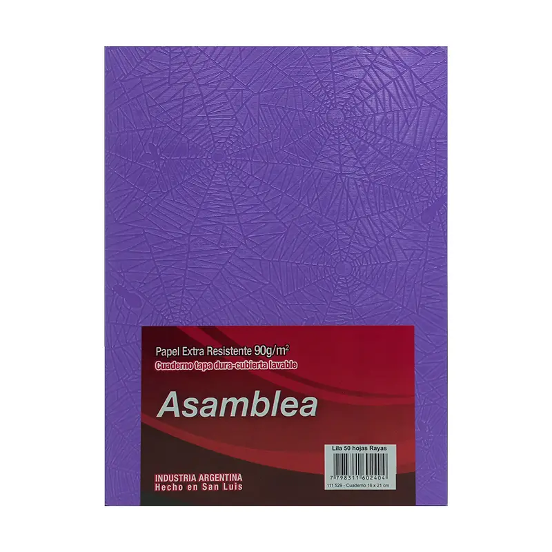 CUADERNO 16X21 ASAMBLEA ARAÑA LILA 50 HS RAYADO