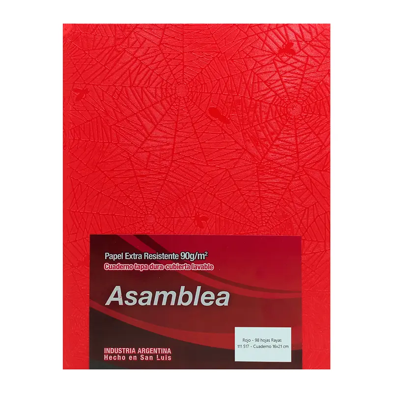 CUADERNO 16X21 ASAMBLEA ARAÑA ROJO 98 HS RAYADO