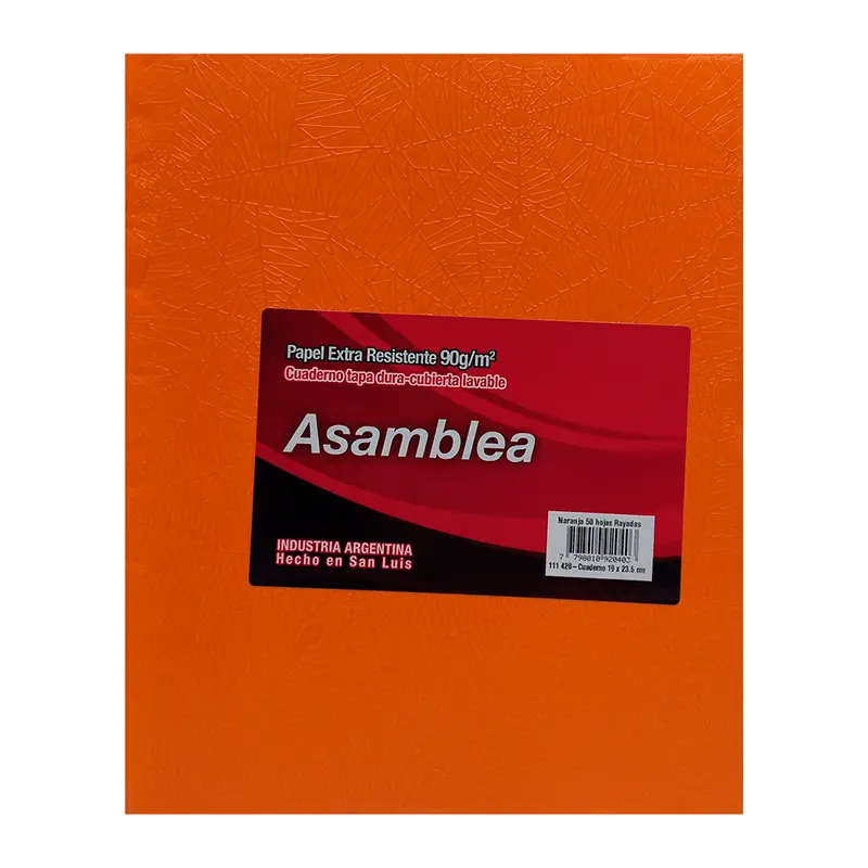 CUADERNO 19X23.5 ASAMBLEA ARAÑA NARANJA 50 HS RAYADO