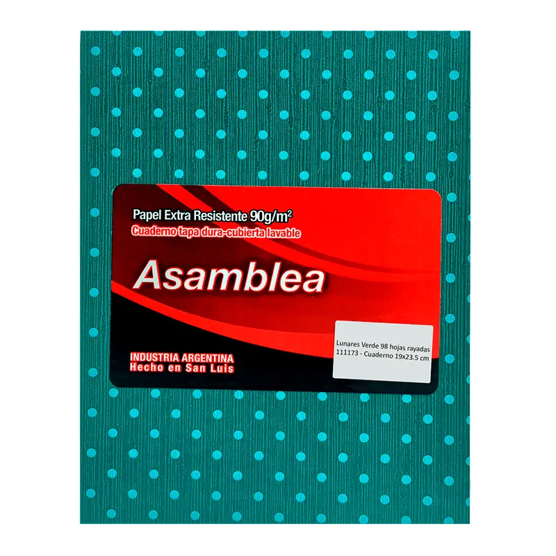 CUADERNO 19X23.5 ASAMBLEA LUNARES VERDE 98 HS RAYADO